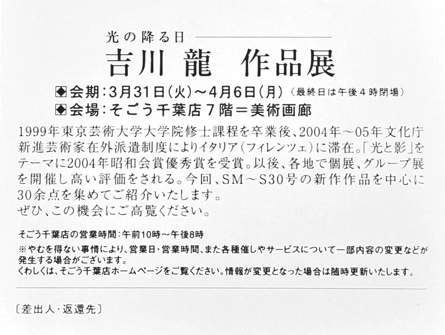 3/31(火)〜4/6(月) そごう千葉 7階美術画廊にて
